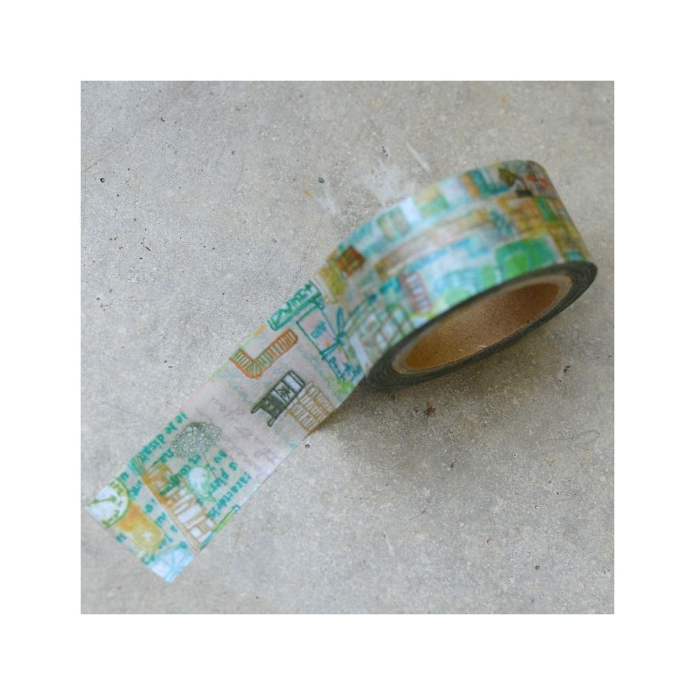 Nádherná originální japonská samolepící washi páska se motivem geometrických tvarů laděných do zelené.