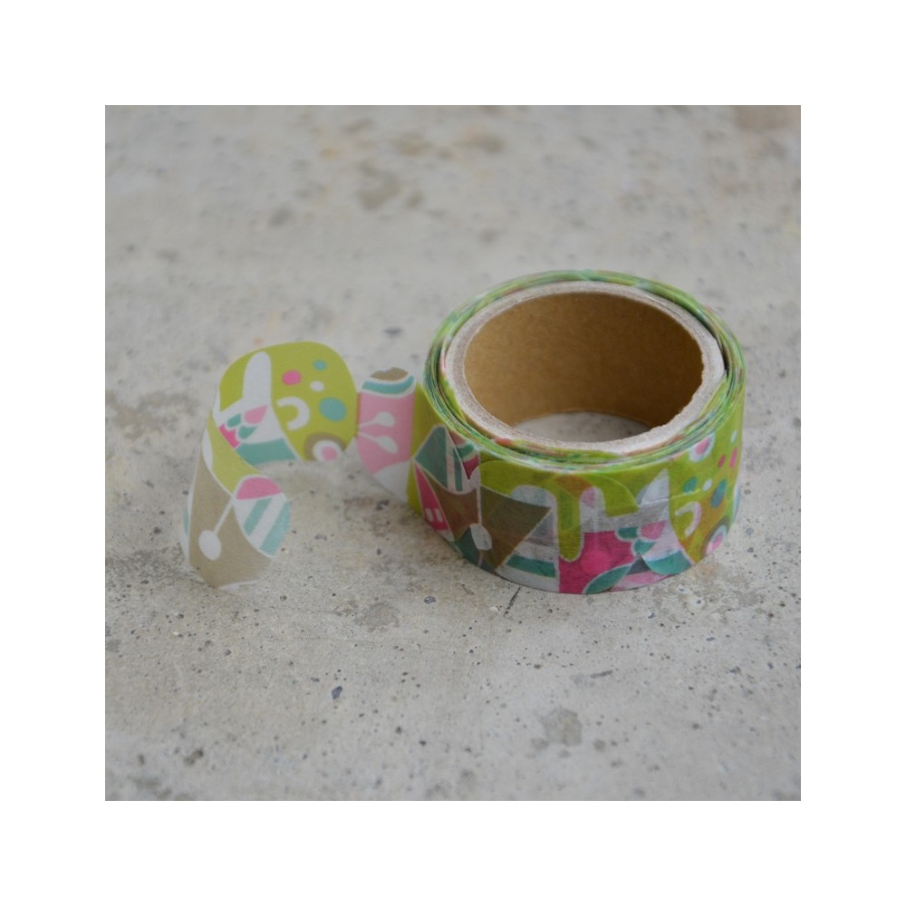 Nádherná originální japonská samolepící washi páska s motivem tvarů v jarních barvách.